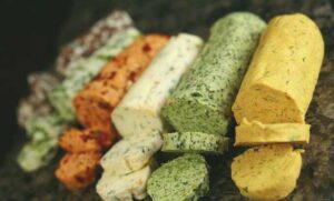 Perk up dishes you usually prepare with seasoned butter — add a slice of garlic-parsley butter on a just-grilled burger right before serving for a rich finish; top a salmon filet with lime-herb butter to add lush citrusy overtones; sauté shrimp in ginger-curry butter; brush bleu cheese butter on grilled steak or vegetables; add any flavor to pasta, soups or stir-fries.