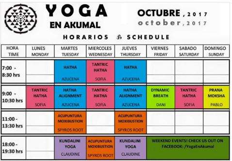 Akumal Yoga Schedule for October 2017 September 30, 2017 0 The yoga studio is located at the arch above Las Casitas reception. Advertise and support the community! Like AkumalNow, donate to keep us running.