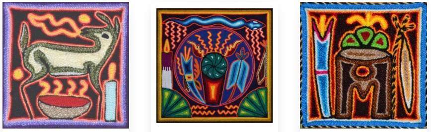 Wixaritari philosophy is based on a universe divided by three entities: the deer, the corn and the peyote.  Yarn is used  to decorate the weaving of paintings, masks, and clothing, such as belts, belts or bags; and even, they are engraved in bowls and musical instruments. Additionally, when the Huicholes elaborate their ceremonial articles, they give much importance to the materials, colors and designs used, due to their sacred meaning related to the gods. For example, the wood of the Brazil tree is linked to Tayau or father sun, and the white flower of five petals is associated to the rains, good harvests and health. However, the most important motifs in the art of the Huichol culture are associated with deer and corn, as the primary source of food, and with peyote, as the link to the cosmogonic dimension.