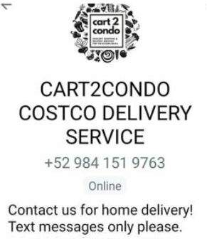 Costco delivers on Fridays. Orders must be complete and submitted before 6:00 pm Thursday. No changes or additions to the orders after that time. Send your list via WhatsApp to +52 984-151-9763.