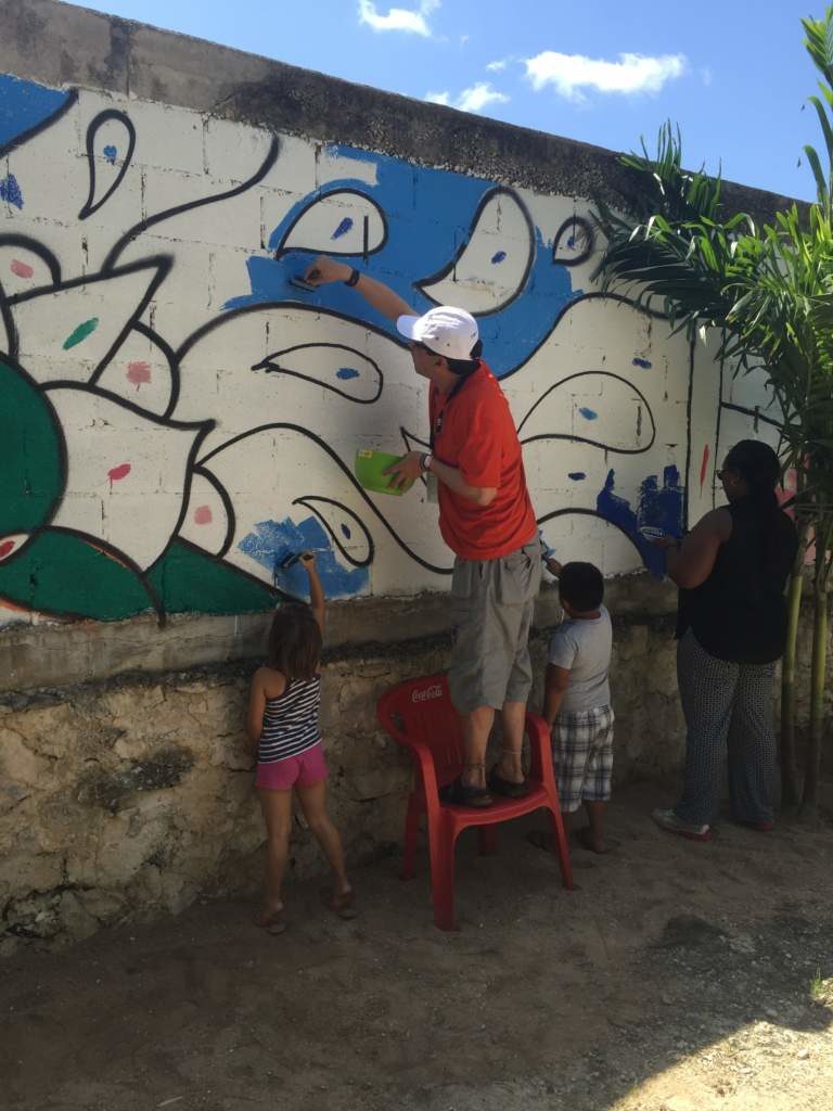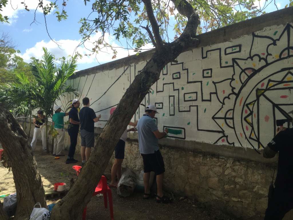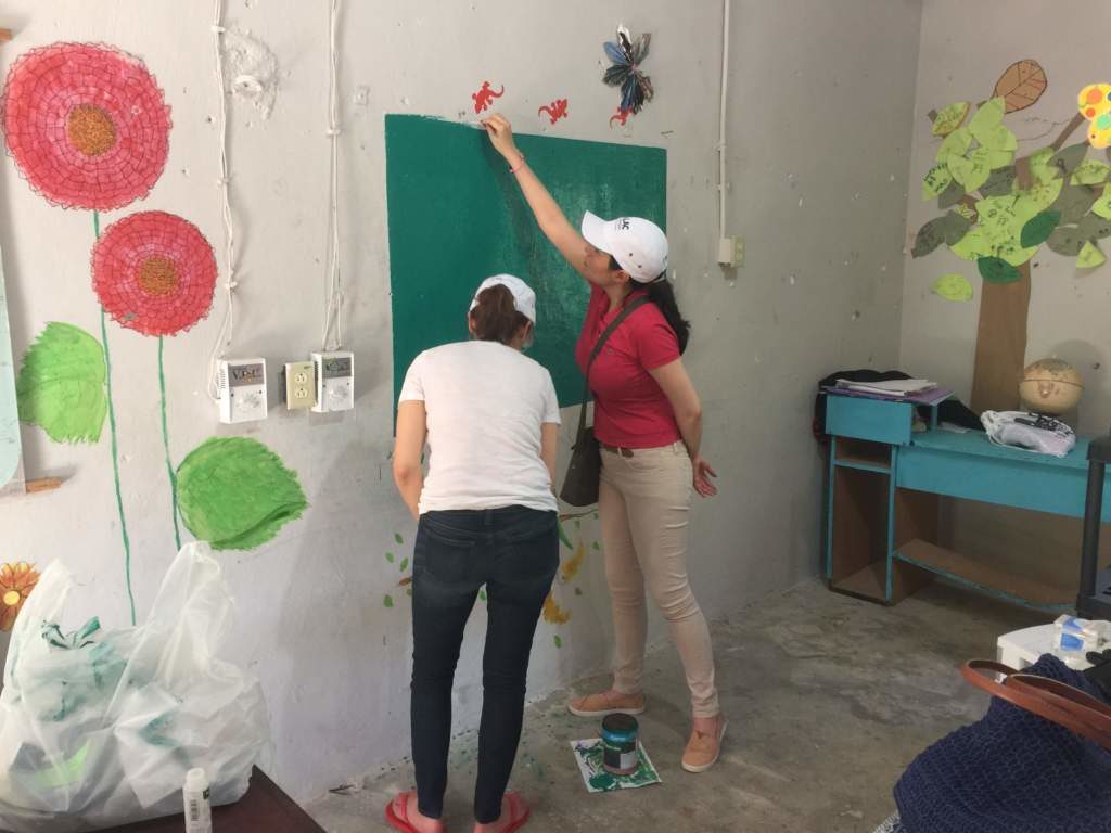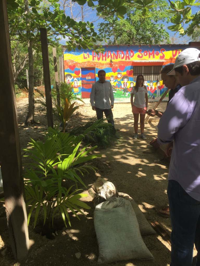 When corporate retreats reach out to Akumal for team-building community events, everyone wins! An International Institution while in Cancún for corporate meetings took time out to journey to Akumal for a day of community service. Centro Ecológico Akumal directed 80 employees for a day of short-term volunteering. Half of the group went to the rocky shore and did a debris clean up, collecting 116 kilos of what was mostly plastic. The other half went to Hekab Be Biblioteca where new murals were added, benches were painted, chalkboards painted on classroom walls, giving a bright, new look for this gem in our community. New palms and other trees were planted so these great community helpers can reap their rewards upon their return to Akumal, leaving a footprint that will last for years to come!