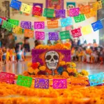 Marigolds, known as cempasuchil, are the traditional flowers. Their bright color and scent are believed to guide the spirits back to the living world. Calaveras or sugar skulls are decorated with colors and often have the name of the deceased on them. Pan de Muerto is a special bread often shaped like bones and dusted with sugar.