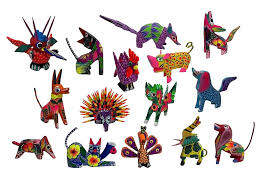 Papel picado are intricately cut paper banners that decorate altars and public areas. Alebrijes, fantastical creatures, either made of wood or papier-mâché are also displayed. Face painting to resemble skulls is a popular, symbolizing the connection between life and death.