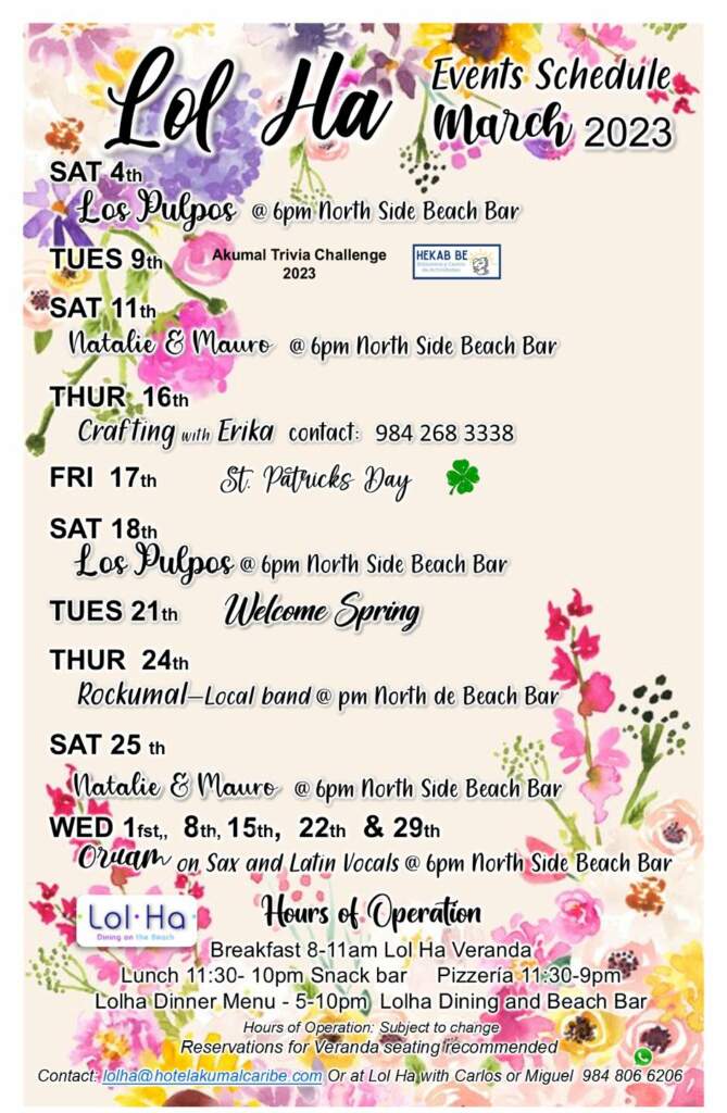 Lol Ha Events – March 2023 February 28, 2023 0 Advertise and support the community! Like AkumalNow, donate to keep us running.