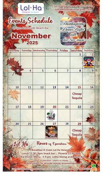 Lol Ha Events – November 2025 October 31, 2025 0 Advertise and support the community! Like AkumalNow, donate to keep us running.