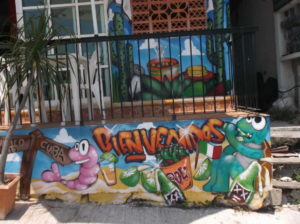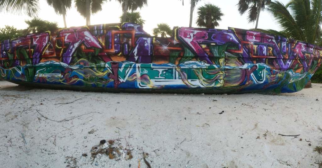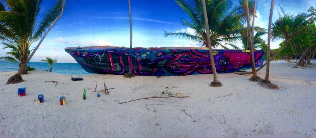 Most recently Jake and artist “Dan Q” from Mexico City worked together to transform a wrecked boat on the beach at Solimán Bay into a work of art — it just makes you smile to see it. Jake has collaborated with other artists in the past, saying there is a spirit of collegiality in street art.