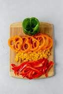 Bell pepper, also known as sweet pepper, is a non-hot relative of the chile pepper. Like the chile, bell peppers are sometimes dried and powdered in which case they are known as paprika.