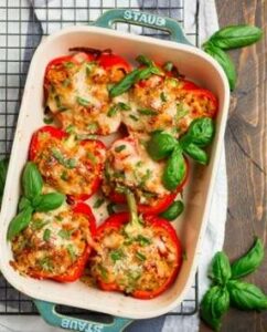 Below is a recipe from wellplated.com for a healthy twist on the Italian Stuffed Peppers made with ground chicken, tomatoes, herbs and cheese. ¡Buen provecho!