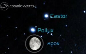 Pollux, one of the brightest stars in the constellation Gemini, will be situated about 1.6 degrees north of the Moon.