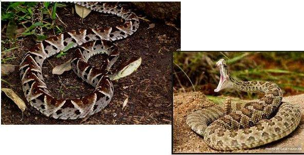 Vipers come from the Family Viperidae.  There are around 45 species in Mexico.  The deadly Fer-de-Lance, is one of the New World’s most deadly snakes.  This snake is abundant around the Yucatan Peninsula and in parts of Chiapas and Oaxaca.  It lives in lowland areas and we should not worry about them in busy tourist areas.