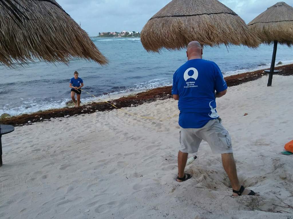 The tortuga is back at the top of the hill going into Akumal Pueblo. It needed a little crack repair and general refurbishing. Segundo Indio, Juan Indio’s son, took on the task.
