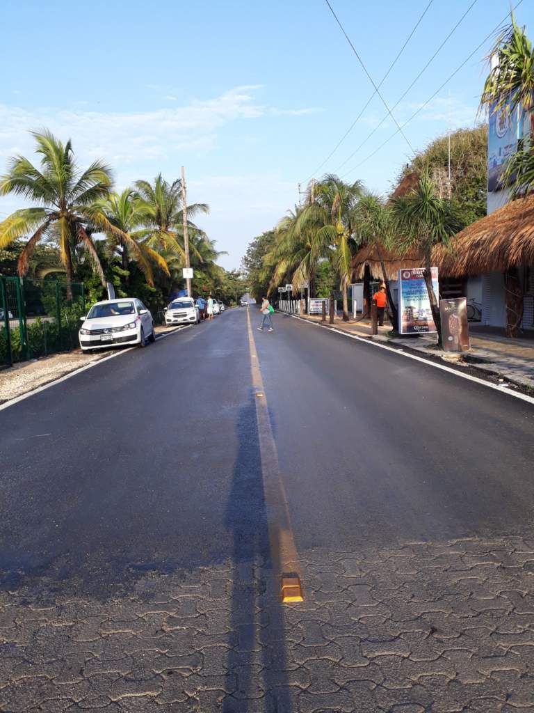 Well, this is definitely new! The entrance road into Akumal has been paved – and even has a yellow line down the middle! According to Terry Richardson, we have the following people & businesses to thank: Tulum President Victor Maas, Hotel Akumal Caribe, Akumal Bay Resort, Secrets, and Tsuuk.