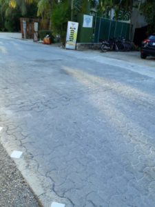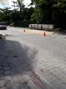The third foto shows the beginning of the rebuilding of the section of road in front of Lol Ka’naab condos. The plan is to eliminate the dip, making tis section match up with paving on either side.